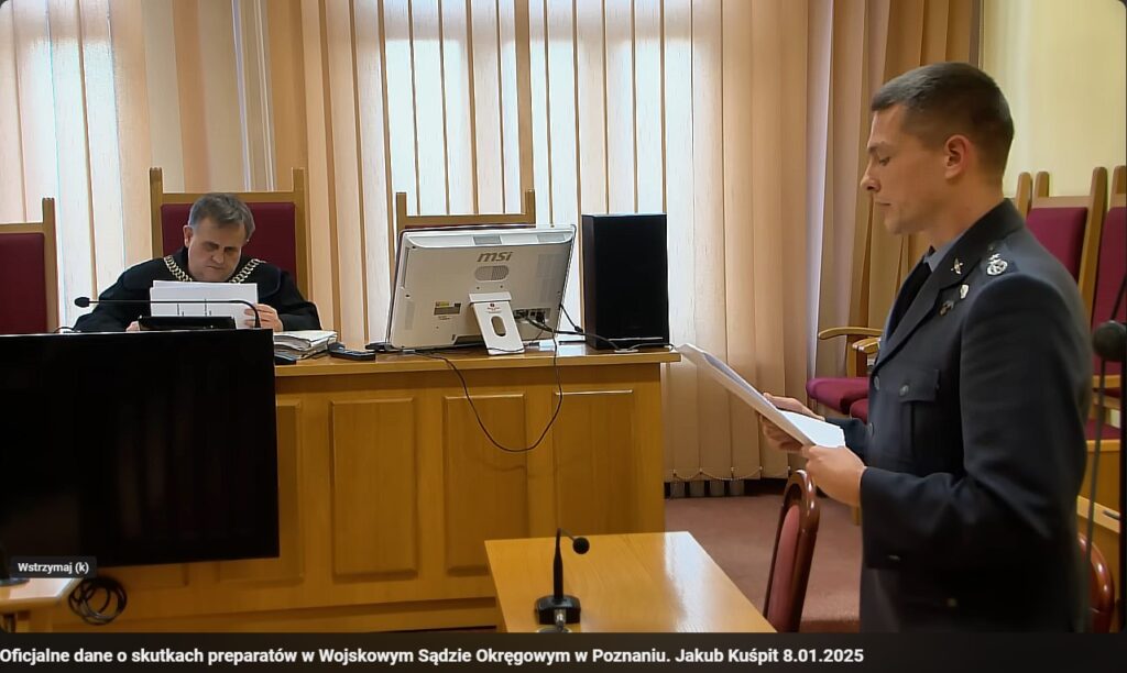 Dokumenty, które składam, jednym z nich jest dokument Pfizer 536, ujawniony na polecenie sędziego federalnego. I na stronie siódmym tego dokumentu możemy zaobserwować dane mówiące o tym, że te preparaty… Zaledwie w 10 tygodni, czyli od 14.12.2020 do 28.02.2021 zabiły 1223 osoby, a uszkodziły zdrowotnie 40 863 osoby, co daje wskaźnik 33 rannych na jednego uśmierconego człowieka. Skalując liczby do ilości podanych na świecie preparatów tej firmy, dochodzimy do niebagatelnych liczb w postaci 17 milionów zabitych ludzi i 567 milionów ludzi z uszkodzonym zdrowiem. Co w mojej opinii wypełnia znamiona ludobójstwa i ataku terrorystycznego przeprowadzonego na całej populacji. Co do drugiego dokumentu opublikowanego 3 stycznia 2025 roku pod nazwą Raport medyczny potwierdzający zawartość grafenu w szczepionkach na COVID-19, grypę, dengę, znieczulenia stomatologiczne, preparatach do szczepień dzieci przeciw odrze, śwince, różyczce i ospie wietrznej. Badania te są zbiorem różnych badań z całego świata i stwierdzają, że wszystkie próbki szczepionek producentów Moderna, AstraZeneca, Pfizer zawierają znaczną ilość kompozytów węglowych i związków grafenu i tlenków żelazo. Te składniki nie zostały zgłoszone przez producentów i nie ma ich na liście składników szczepionek. Jednak badania pokazują, jak niebezpieczna jest rodzina grafenu. Ale ludzie nie zostali poinformowani, że wstrzykuje im się śmiertelną substancję. Ma to związek, ponieważ moją linią obrony… jest podniesienie kwestii działania w stanie wyższej konieczności, aby ratować zdrowie i życie kolegów, którzy nie mieli tych informacji w tamtym czasie, a dzisiaj są one potwierdzone badaniami, które składam. Przyglądając się opisowi działania w stanie wyższej konieczności, Nawet jeżeli sąd uznałby, że zniesławiłem pułkownika Słotę celowo, to wciąż jest to niższe dobro w porównaniu z życiem, w porównaniu z życiem i zdrowiem całej populacji. Dziękuję. […]