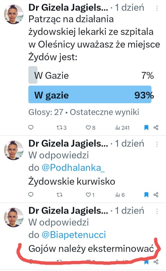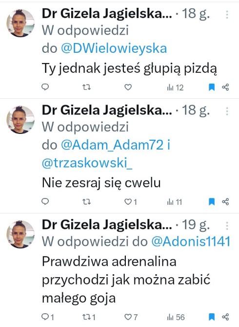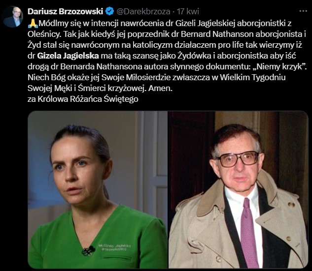 Tymczasem ostro działa niedawny rzeźnik praw obywatelskich, a obecnie minister niesprawiedliwości – Adam Bodnar, niestety jeszcze na domiar złego łączący w naszym nieszczęśliwym kraju funkcję głównego oskarżyciela oraz inicjatora i dozorcy postępowań prokuratorskich, zwłaszcza przeciwko podejrzanym o „mowę nienawiści”. Nie widzi belki we własnym oku, ale znajdzie igłę u ludzi, którzy ośmielili się nie tylko mieć własne zdanie, ale jeszcze je wyrażać. Za to nie przeszkadzają mu igły wbijane, już masowo, w dziecięce serduszka przez morderców, dla zmylenia przeciwnika, nazywanych lekarzami. TO SIĘ MUSI ZMIENIĆ!