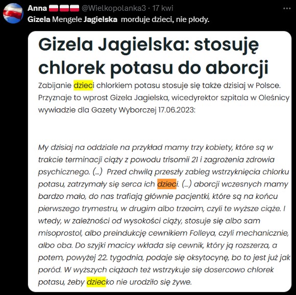 Co możemy zatem zrobić? Morderców należy zwalczać systemowo! Trzeba wprowadzić obowiązek rejestrowania zapisu USG wraz z kopią opisu badania, również WE WSZYSTKICH gabinetach prywatnych, żeby lekarz nakłaniający do aborcji miał świadomość, że diagnoza będzie weryfikowana. Być może nawet wielokrotnie i jeśli w ten sposób się „pomyli” dwa razy, powinno mu się odbierać prawo wykonywania zawodu. Wtedy nagle skończy się namawianie do zabicia dziecka z powodu „wady rozwojowej” czy „nieuleczalnej choroby”, a w każdym razie wielokrotnie spadnie liczba takich zdarzeń. Oczywiście, „lekarz” może próbować wpłynąć na pacjentkę szepcząc jej do ucha, że „ma jakieś podejrzenia”, co do zdrowia jej nienarodzonego dziecka. Ryzyko będzie jednak spore i na piśmie raczej jej tego nie da. Ważne jest, aby równolegle uświadamiać kobiety, że nie tylko mogą, ale wręcz POWINNY ŻĄDAĆ tego rodzaju diagnozy w formie pisemnej i zawsze konsultować z innym specjalistą, a najlepiej z kilkoma doświadczonymi klinicystami. Zakładam, że większość kobiet tak czyni, ale siewcy strachu, którzy próbują napędzić biznes przemysłowi aborcyjnemu, potrafią przekonać jednak jakąś część przyszłych matek do zabójstwa. Mieliśmy okazję o tym poczytać, nie tylko w portalu Znany Lekarz, prawda? Pani Gizela, mam nadzieję, będzie musiała wytłumaczyć przed sądem jeszcze wiele, wiele rzeczy. Jej wypowiedzi, już choćby tylko w programie Kanału Zero, nadają się na szereg postępowań prokuratorskich. Pytanie brzmi, nie KTO je rozpocznie, bo tego nie wiemy. Raczej możemy nawet być pewni, że pośpiechu nie będzie. Znacznie ważniejsze jest przecież, aby dopaść posła Brauna, najlepiej jeszcze przed wyborami. Dobrze postawione pytanie, to KIEDY, ILE zarzutów, oraz JAK WIELU osobom, postawi prokuratura, biorącym udział w tym okrutnym procederze? Co się odwlecze, to nie uciecze. Trzeba tylko i aż, konsekwentnie działać dalej, jak czynią to choćby Fundacja Pro-Prawo do Życia, czy pani Kaja Godek. Jasne, że zmiany w prawie będą niezbędne i trzeba będzie cierpliwie poczekać, co nie oznacz, że bezczynnie.