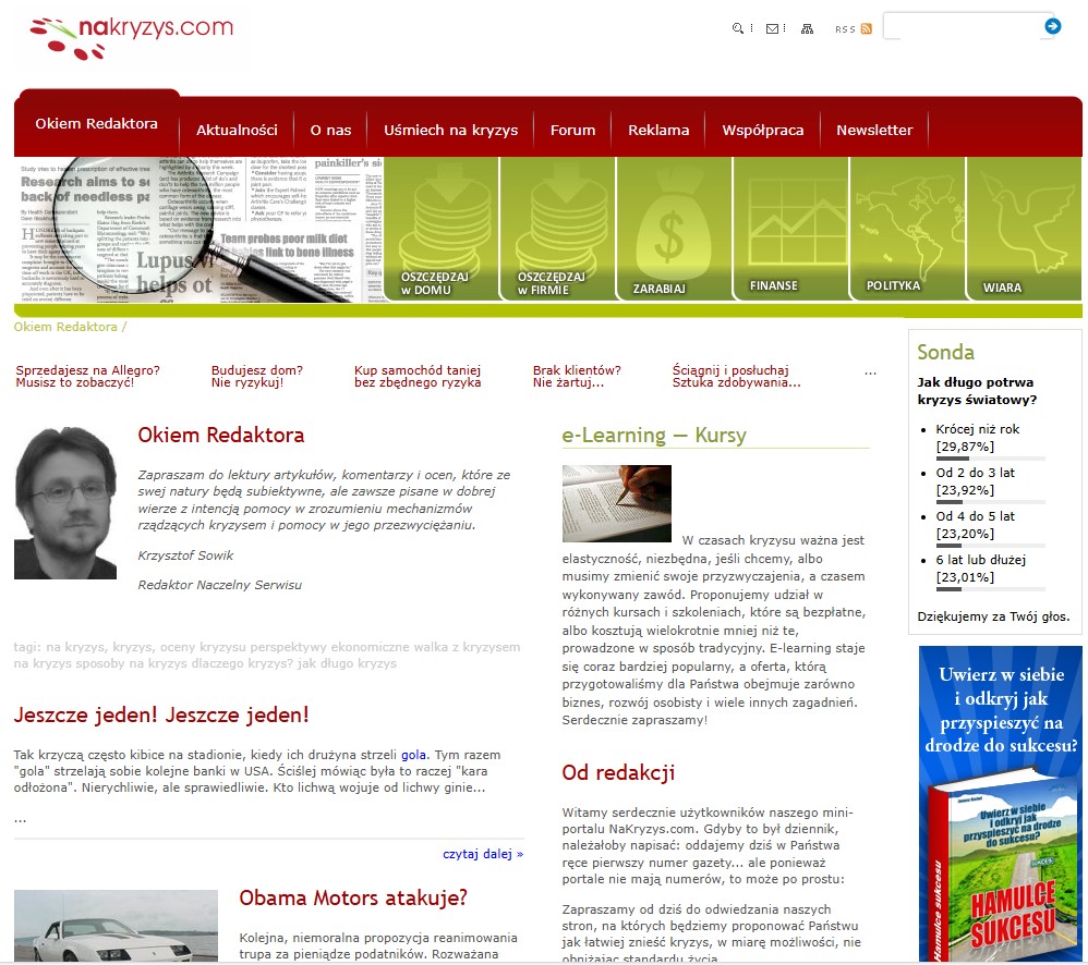 W każdym razie, z tą ideą, wspieraną przez Marka Morawskiego, który prowadził duże studio graficzne, udałem się do stolicy, gdzie szefowi IDG Polska zaświeciły się oczy. Niecały kwartał później pracowaliśmy z kolegą Andrzejem Michalskim nad pierwszym wydaniem dwumiesięcznika „CYBER”. Był sukces, niestety, skonsumowany przez „przyjaciół” z Warszawy, którzy „sprawnie” przejęli projekt, bo „nie godziło się, żeby coś dobrego wydawać w jakiejś zapyziałej Łodzi”. Potem redakcja zmieniła się jeszcze dwukrotnie, aż projekt upadł. Stare dzieje… Piszę o tym, ponieważ później miałem okazję wykorzystać pewne doświadczenia, kiedy stworzyliśmy z przyjaciółmi portal nakryzys.com.