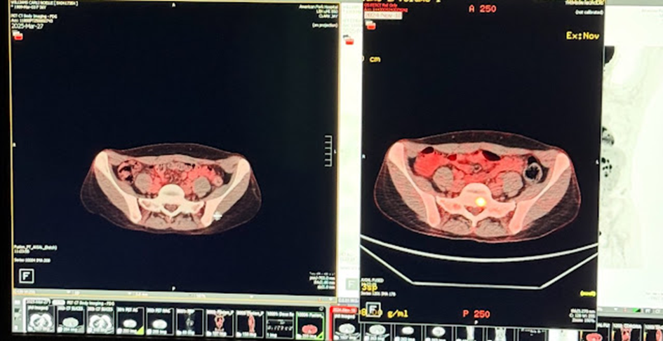 Luty 2025 r. – Maj 2025 r.: U pacjentki dodano Iwermektynę i Mebendazol do nowej chemioterapii/immunoterapii, a wszystkie przerzuty kurczą się i zmniejszają aktywność metaboliczną. Przerzuty do wątroby, kości i węzłów chłonnych.