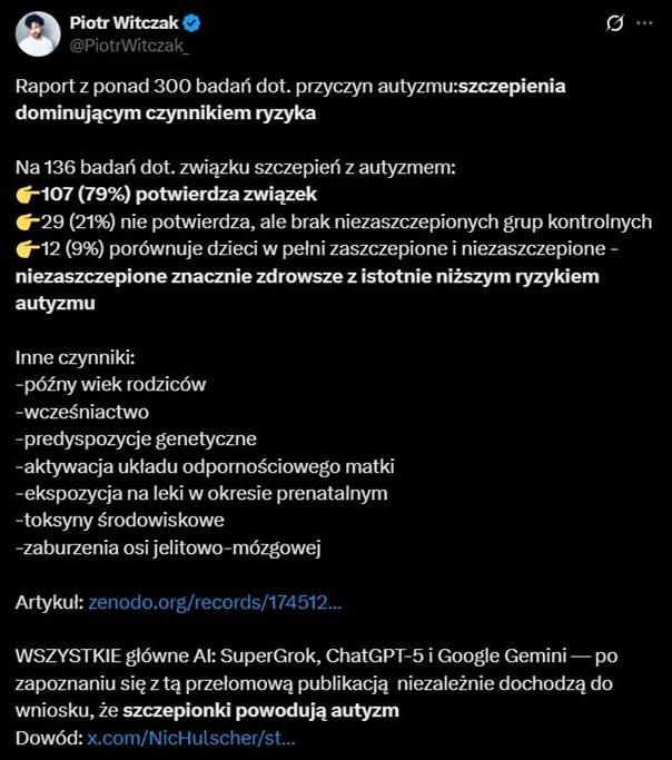 i artykuły: Obrzydliwy antysejsmityzm, Gangsterzy i filantropi, Obywatelstwo to nie bilet na koncert, AI cierpi na autyzm, Wojciech Szczęsny nie chciał, Imigranci od zaraz, Skumbrie w temacie, A świstak siedzi i… ,Czy wirusy naprawdę istnieją? Wojny nuklearnej nie będzie, Banderyzacja i jacht dla każdego, Higiena plus i różne dewastacje, Coraz więcej dowodów, Tego nie wolno przeoczyć! Dzieciofobia w natarciu, Chętniej dadzą Owsiakowi, To było słabe! Debatanci w uśmiechniętej stacji, Wyłączą wszystko! Bezkarność morderców, Czas zadumy, Istnieją skuteczne terapie, Co z tym rakiem? A nasi mordercy milczą, Czy Kennedy obroni nasze dzieci? Czy to lek na wszystko? Dokładne wytyczne mordowania ludzi, Dowody ludobójstwa złożone w sądzie, Cenzura pozostanie bezkarna? Mitologia polio trwa, Uważajcie w Sylwestra! Mają nas za idiotów, PAN w służbie WHO, Hodowla mózgów i inne teorie, Tylko bez teorii spiskowych! Krzywdzenie dzieci, Byli w tym skuteczni, Terapia Daremna w natarciu, Ile lat więzienia? Sztuczny Inteligent, Zainfekowany mózg, I tylko dzieci żal, Zbrodnie medyczne trwają od lat! Szczepionki gorsze od choroby, Sanitarna bandyterka powraca, Strzelanie w stopę, Bezwarunkowy dochód podstawowy coraz bliżej! Oszuści, mordercy i EVC, Zapnijcie pasy! Etyka znika, Polimeryzacja ludzkości, Broń biologiczna w Polsce? Gumowe skrzepy we krwi, System zaczął przeciekać, Grypa szaleje? Powyborcza czkawka, Woda z mózgu, Prawdziwy MATRIX, To już jest koniec! Turborak i ratunek po szprycy, DNA zmienione szczepionkami, Nowotworów o 14000 procent więcej, Dzieci umierają coraz szybciej, Nikt nie umknie! Pałowanie z uśmiechem, Postępactwo naciska, Twój awatar przetrwa, Czas przebudzenia, Każdy ma wybór, W cieniu wojny, Chcą naszego dobra, Bandyckie metody, Świecenie oczami, Biorą się za niemowlaki, Rok kłamstw, Więzienie za prawdę o eliksirze, Covidowe srebrniki i WHO, Grillowanie lekarzy, Ponad 38 mln ofiar szczepień, Wielu rannych i będzie gorzej, Bandyci i mordercy się nie zatrzymują, Kontrakt z Pfizerem ujawniony! Pętla się zaciska, Kolejna pandemia lada moment, Czy Twoja komórka okaże się zabójcą? Już nic nie będzie tak samo, Potworna Sztuczna Inteligencja, Będą zabijać, czy tylko straszą? Właśnie to chcą ukryć! Gwałty i tortury, Pedofile z WHO, Tragedia kanadyjskich dzieci, Sztuczne mięso w Polsce?! O ponad 6300 procent więcej zgonów dzieci, WHO poza prawem, Kanibalizm u bram, Bawią się nami znakomicie, Zamordyści odbiorą nam mienie, Sportowcy marionetkami globalistów? Szczepionkowy dogmat i cenzura, Oddali życie za pracę, Smacznego mRNA, Grafen detoksykacja, Sztuczna inteligencja głupia, jak but? Kłamstwo musi runąć! Trzymanie za mordę, System się przewraca, Ryzyko śmierci większe o 276 procent, Piętnastominutowe więzienia, Czipowanie ludzi już wkrótce! Zjedz świerszcza, Szczepionkowe skandale, Odporność zabijana na raty, Grafen zamiast wirusa? Twoja praca zniknie, 500 szczepionek w ciągu 8 lat!, Czy to na pewno wirus? Kredyt społeczny wchodzi tylnymi drzwiami, Jak walczyć z WHO? Zabijanie odporności potwierdzone, A co na to Kościół? Udarów więcej o ponad 100 tysięcy procent! Pfizer obnażony, Krew zaszczepionych niebezpieczna? 14.650 rodzajów powikłań! Zaszczepione dzieci umierają 137 razy częściej, Koniec teorii spiskowych? Umiera o 691 procent więcej dzieci, O 10.660 procent więcej nowotworów, Jak kłamcy bronią morderczych szczepionek, Psychopaci wytworzyli HIV-1, Cała prawda o COVID-19, Co wzięli zamiast szczepionki? WHO w mętnej wodzie, Teoria spiskowa do korekty, Sprawdź szkodliwość swojej szczepionki, Niemal o 300% więcej diagnoz nowotworów, Szczepionki czy trutka na szczury? Co pływa we krwi zaszczepionych, Masowe zgony sportowców, Eliksir śmierci, Ofiary covidowych szczepień przemówiły, Norymberga 2.0 coraz bliżej, Działa tylko trzecia dawka! Magnetyczne szczepionki i depopulacja, Maseczki groźne dla życia, Śmierci, których nie było