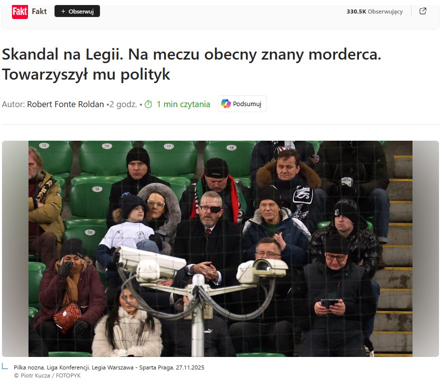 Taki tytuł wyprodukował FAKT. Poseł Braun z rodziną i panem Walusiem oglądali sobie mecz stołecznej drużyny. Ze względów sportowych całkiem niepotrzebnie, zresztą, ale Radosław Sikorski nie omieszkał skomentować tego w taki sposób. Cytat:
