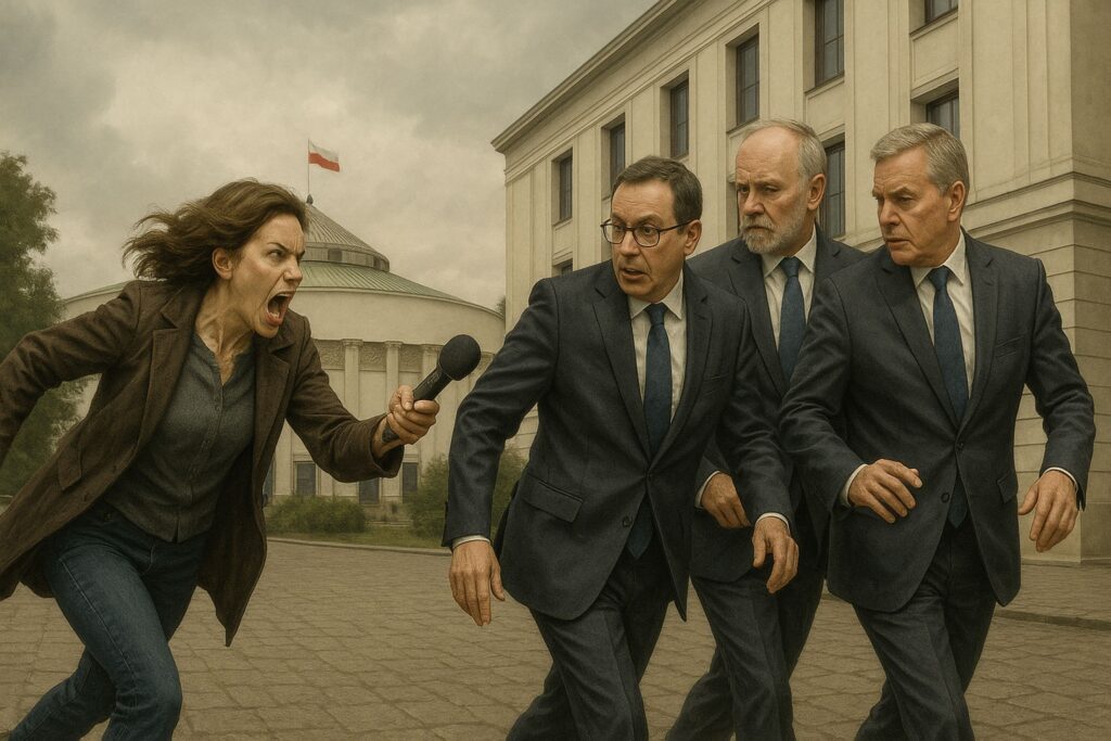 Do czego zmierzam? Oto kilka dni temu, w czasie konferencji prasowej Konfederacji Korony Polskiej, która dotyczyła głównie samowoli banków i ich wpływu na nasze życie oraz globalistycznej agendy, która jest wdrażana konsekwentnie, zabierając nam wolność, pojawiła się dziennikarka TVN24, Maja Wójcikowska. Nie byłoby w tym nic złego, gdyby nie wyjątkowa napastliwość tej pani, która wzorce czerpie prawdopodobnie od Moniki Olejnik, znanej z „przesłuchiwania” swoich rozmówców. Można tutaj dodać, że chwile spędzone w programie „Kropka nad i…” często były zapewne traumatycznym przeżyciem dla gości pani Moniki (pseudonim operacyjny „Stokrotka”). Cóż, skądś te wzorce jednak trzeba było zaczerpnąć.